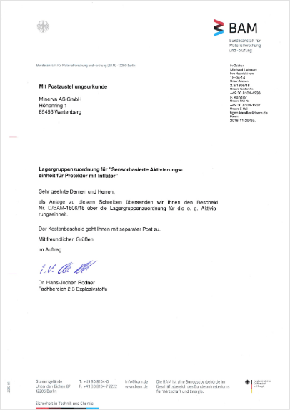 for Materials Testing (BAM), opens the airbag within 0.2 seconds.